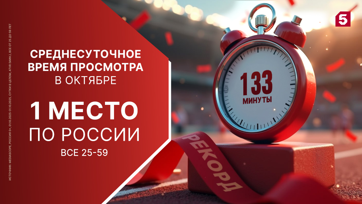 По итогам октября Пятый установил новый рекорд по среднесуточной длительности просмотра среди всех федеральных каналов в аудитории «Все 25-59». Телезрители страны стали смотреть Пятый еще дольше — 133 минуты в день. По этому показателю канал сохраняет безусловное лидерство уже девять лет подряд.