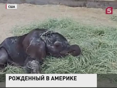 В зоопарке американского города Даллас состоялся первый выход в свет слонёнка, родившегося 10 дней назад. 79-килограммовый детеныш сначала испугано прижимался к матери и даже пытался спрятаться от всех в стоге сене.