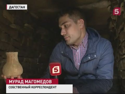 Примерно тысячу двести лет назад в Дагестане так хоронили людей. Основательно строили склеп из камня. Умершим клали еду и напитки. Вот, рядом с останками нашли и два древних глиняных кувшина. Возможно, они были наполнены водой, молоком или вином. По этим кувшинам археологи установили примерный возраст склепа. Это изделие сделано вручную, без гончарного круга. Вот видны, следы пальцев, и декоративный узор - волнообразная линия по кругу. Склеп никто специально не искал. Могила открылась после оползня. Местные жители, обнаружив ее, сразу же сообщили ученым. Здесь и прежде находили подобные усыпальницы.