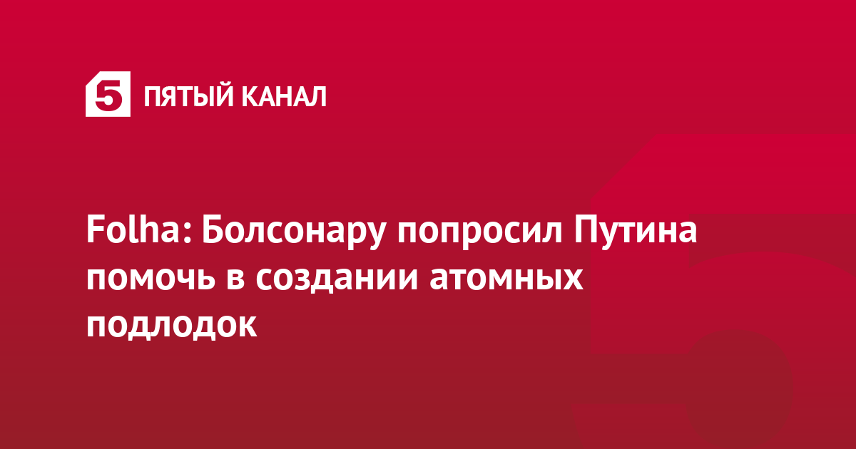 Президент Бразилии Жаир Болсонару в ходе переговоров в феврале попросил президента России Владимира Путина оказать республике помощь в создании атомных подводных лодок, пишет газета Folha de Sao Paulo.