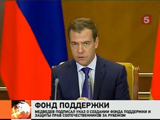 Россия будет поддерживать соотечественников, которые живут в других странах, и защищать их права. Этим займется специальный фонд - приказ о его создании подписал сегодня Дмитрий Медведев. Об этом президент сообщил на заседании Совета безопасности. Реализацией проекта займутся министерство иностранных дел и Россотрудничество. Фонд должен заработать в Москве в начале следующего года.