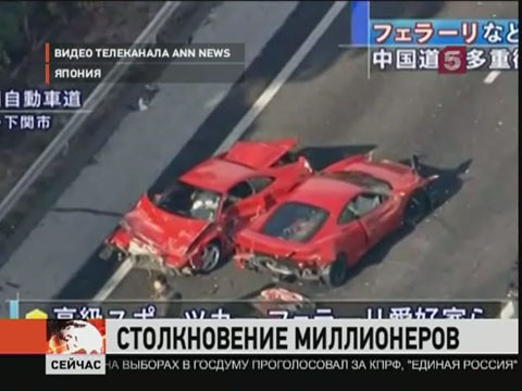 Они столкнулись на трассе между префектурой Хиросима и регионом Кюсю во время традиционного воскресного заезда любителей дорогих спортивных машин. Из-за плохой погоды водитель одного из «Феррари» не справился с управлением и выехал на встречную полосу. Никто не пострадал, но вот машины восстановить, скорее всего, не удастся.