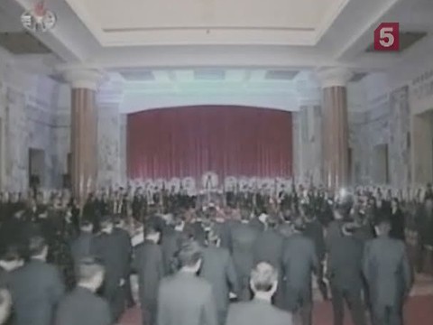 И сегодня же Ким Чен Иру присвоили звание Героя КНДР посмертно. За революционные заслуги. Как говорится в документе: лидер нации осуществил бессмертные подвиги для страны и её народа, времени и истории. Этот документ о награждении парламент страны подписал ещё 19 декабря. Но Центральное телевидение КНДР сообщило об этом только сегодня. Ким Чен Ир скончался 17 декабря. Накануне в Пхеньяне завершилась траурная церемония. Вождя северокорейского народа похоронили рядом с телом его отца — Ким Ир Сена.