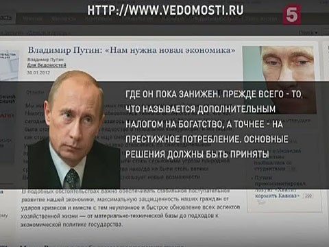 «У нас есть резерв роста налоговых доходов по ряду направлений: дорогая недвижимость, потребление люксовых товаров, алкоголя, табака, сбор рентных платежей в тех секторах, где он пока занижен. Прежде всего — то, что называется дополнительным налогом на богатство, а точнее — на престижное потребление. Основные решения должны быть приняты уже в этом году, с тем чтобы со следующего года владельцы дорогих домов и машин платили повышенные ставки налогов. При этом важно не увлекаться, чтобы под эти меры не попали представители среднего класса».