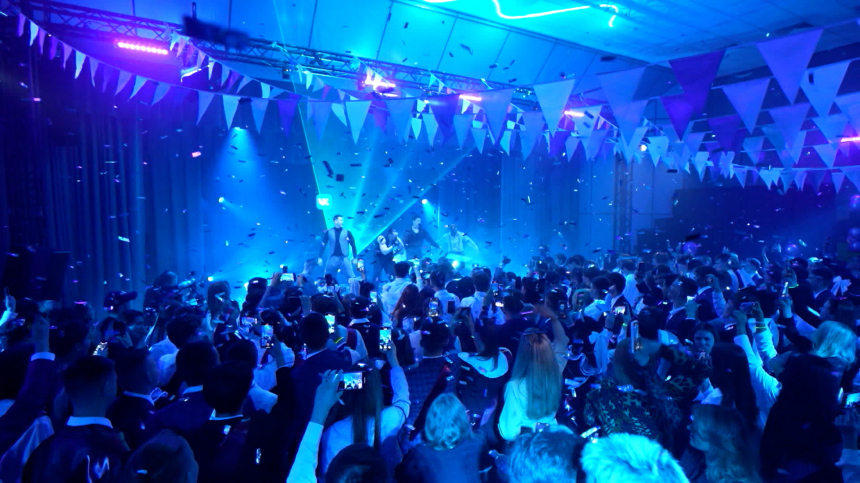Выпускники завороженно осматриваются: это уже не их актовый зал — профессиональная концертная площадка.