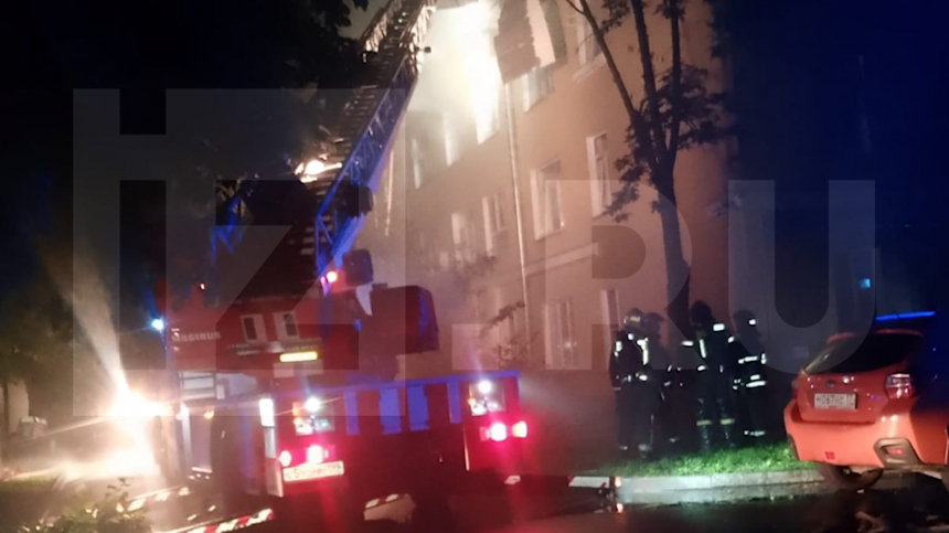 Сильный пожар вспыхнул ночью на улице Мытной в Москве