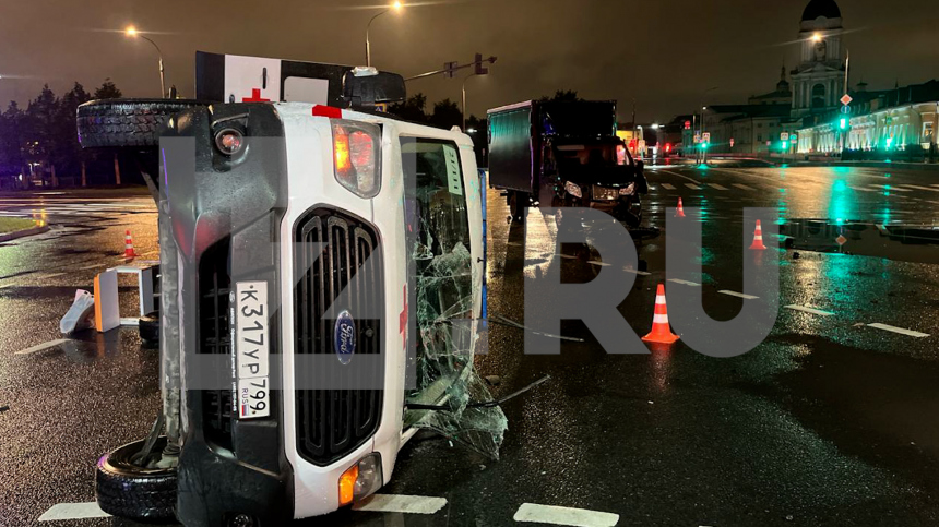 В центре Москвы в результате аварии перевернулся автомобиль скорой помощи