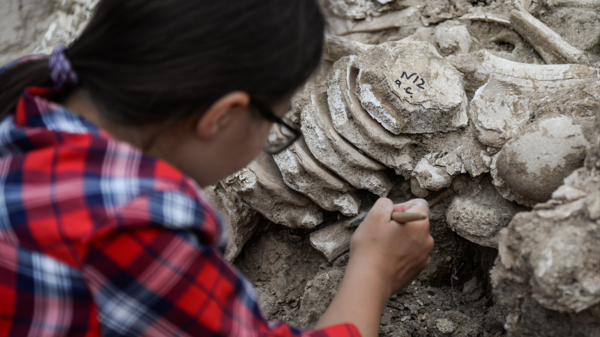 По словам палеонтологов, кости принадлежат молодому самцу мамонта, погибшему в 10-летнем возрасте. Ну а жил он на нынешней территории Краснодарского края больше 20 тысяч лет назад.