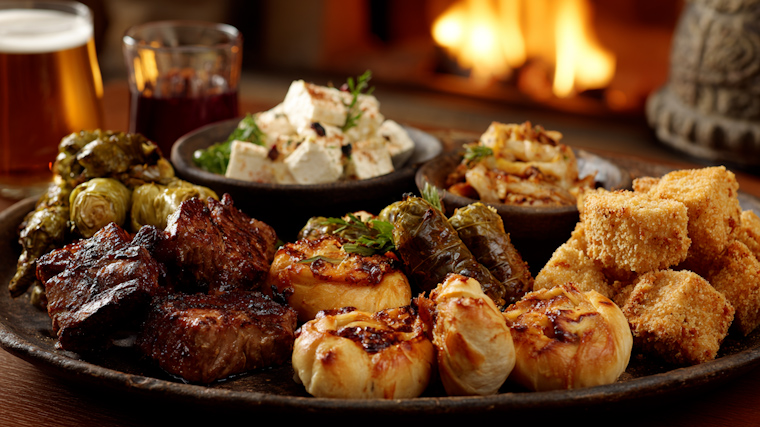 Здесь можно будет попробовать блюда из мяса, приготовленные на открытом огне, а также сыры, голубцы из виноградных листьев и выпечку. Не обойдется и без жареной еды — гостям предложат сырные шарики, картофельные дольки, куриные стрипсы в панировке.