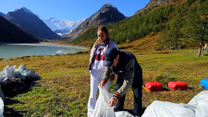 Актер Павел Деревянко и его жена Зоя Фуць вместе с эко-волонтерами движения «Мусорная лавина» приняли участие в акции по очистке главной природной жемчужины региона и объекта Всемирного наследия ЮНЕСКО — горы Белухи на Алтае.