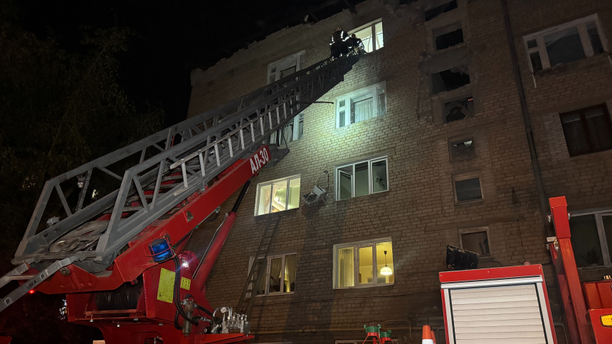 Уточняется, что спасатели сейчас занимаются эвакуацией людей. Сотрудники МЧС применяют для этого лестницы, так как в результате удара на четвертом и пятом этажах обвалились лестничные пролеты.