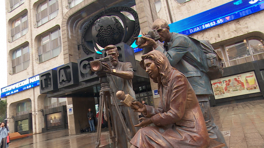 В Москве перед штаб-квартирой ТАСС открыли скульптурную композицию «Российские журналисты» работы Владимира Иванова. В церемонии открытия приняла участие официальный представитель МИД Мария Захарова. Кадры с открытия передает 5-tv.ru.