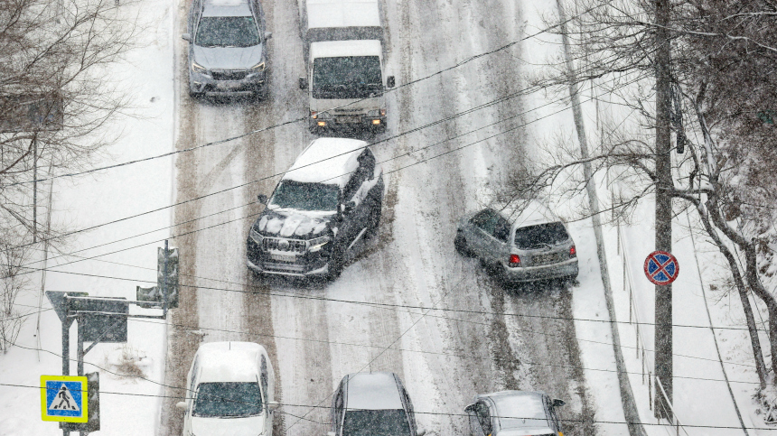 И начинаем с кадров Камчатки, где движение буквально сковал сильный гололед.