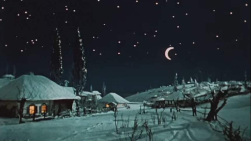 Сцены полетов Солохи снимались с использованием елочных игрушек на нитках. И, если присмотреться, видно, как актриса с усилием срывает «звезды».