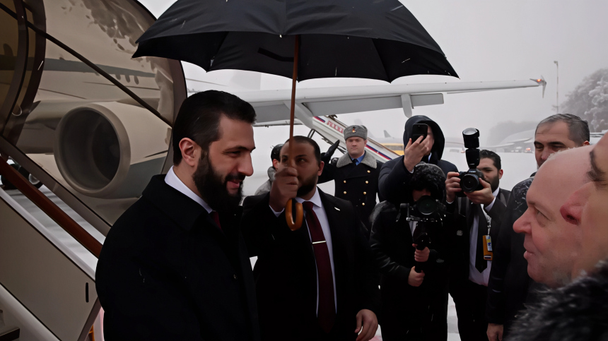 Временный руководитель Сирии Ахмед аш-Шараа прибыл с визитом в Москву, где у него запланированы переговоры с президентом России Владимиром Путиным. Соответствующие кадры публикует 5-tv.ru.