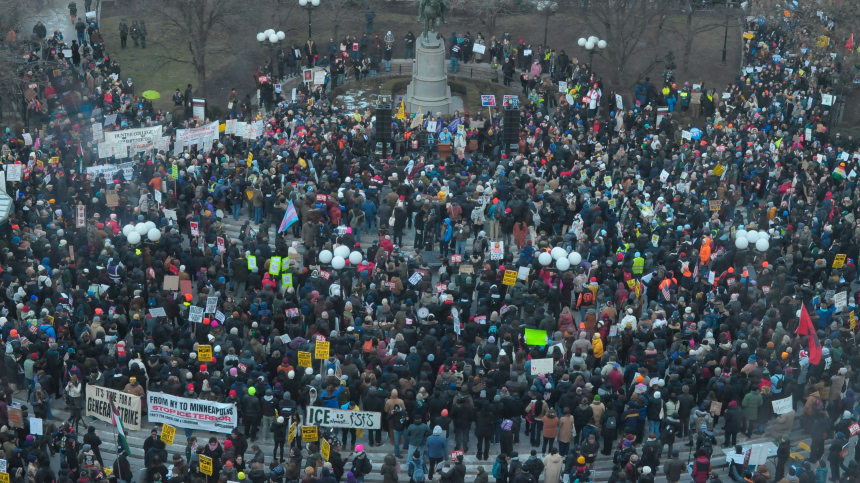 Толпа требует отставки руководителя миграционной службы США, их поддерживает окружной суд Миннесоты. В то же время фанаты президента США Дональда Трампа нападают на защитницу иммигрантов — сенатора Ильхан Омар, ее облили неизвестной жидкостью из шприца. Трамп продолжает поддерживать своих «опричников», которые убивают уже второго человека в этом году.