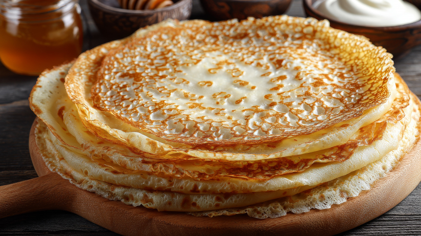 В Москве самой популярной начинкой для блинов в 2025 году оказалась сметана. Это следует из опроса на портале мэра и правительства столицы, в котором приняли участие более 185 тысяч человек. За сметану проголосовали 39% респондентов, за мед — 26%, за сливочное масло — 15%. В 2024 году лидером предпочтений москвичей была красная икра.