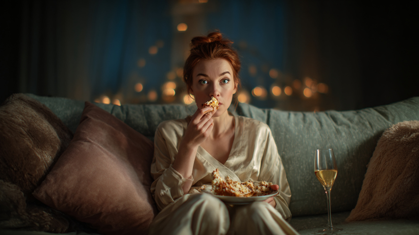 Вечером мы чаще едим не из-за голода, а из-за эмоций. Днем нас сдерживает график, работа и социальные рамки, а вечером контроль ослабевает. Отсюда — перекусы «на автомате», сладкое «за компанию с сериалом» и ощущение, что именно ужин все портит.