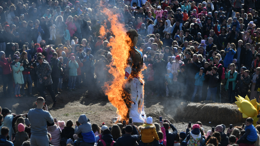 Сжигание чучела символизирует окончательное прощание с зимой и обновление природы.