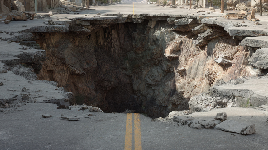 Инженерная авария в Китае привела к появлению огромного провала в центре городской стройки.
