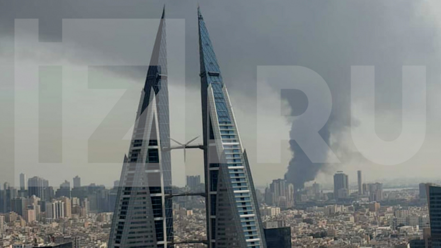 На видео можно увидеть высокий столб дыма на горизонте за городом. По данным издания Al Arabiya, это последствия атаки Ирана на американскую военную базу США. Там базируется Пятый флот Военно-морских сил Соединенных Штатов.