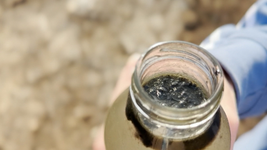 Выпить такой коктейль вряд ли кто решится — даже козы воротят морду. Жители поселка Муравей вместо привычной воды черпают из скважины черную жижу с резким запахом бензина.