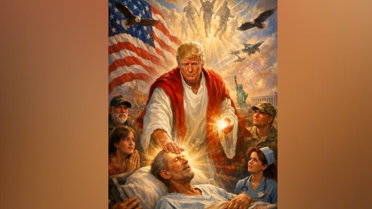 Президент США Дональд Трамп разместил в своей соцсети Truth Social изображение, где предстает в виде фигуры, напоминающей Иисуса Христа. Снимок, предположительно созданный нейросетью, вызвал определенный «отклик» у публики.