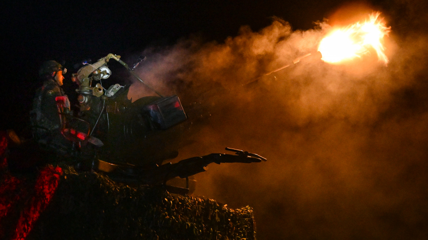 Дежурный расчет оперативно занял огневую позицию. Используя современные ночные прицелы, позволяющие эффективно вести огонь в условиях ограниченной видимости, зенитчики своевременно взяли цели на сопровождение. При подходе беспилотников на дальность прямого выстрела артиллеристы открыли огонь из спаренной 23-миллиметровой установки.