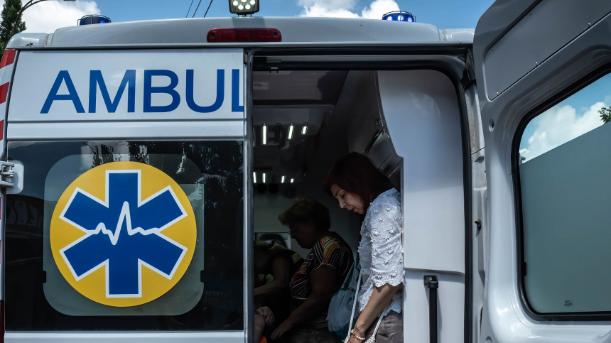 Взрослых раненых осматривают на оказывающих помощь на месте.