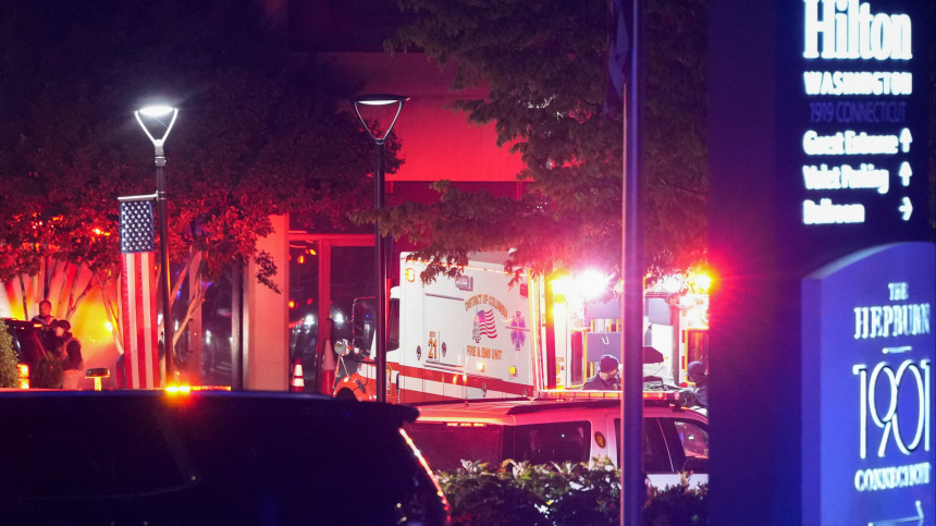 На месте стрельбы в отеле Washington Hilton, где проходил торжественный ужин президента США Дональда Трампа с корреспондентами Белого дома, работают агенты ФБР и полиция. Периметр оцеплен. Соответствующие кадры появились в распоряжении 5-tv.ru.