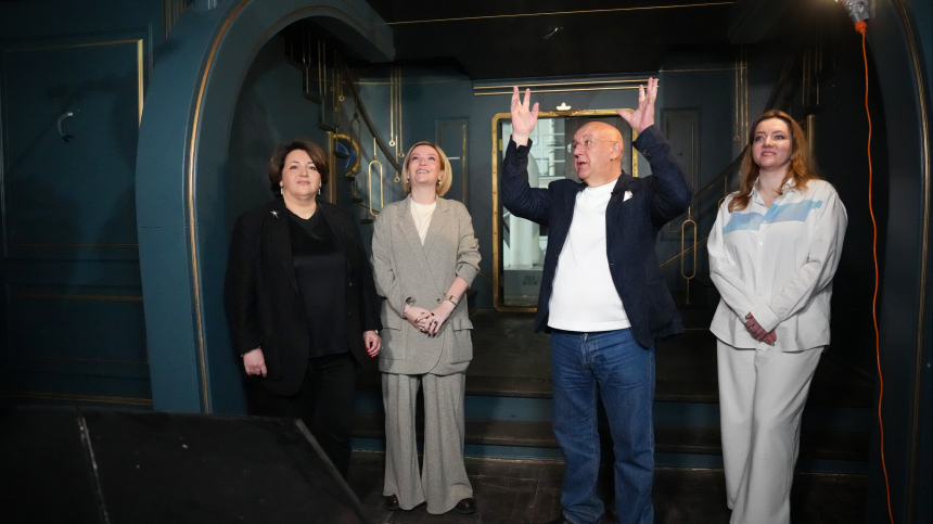 В момент осмотра дирижабля внутри как раз шли репетиции. Главу Минкульта и генерального директора Национальной Медиа Группы познакомили со съемочной группой, потом показали процесс в подробностях. Включили огромные LED-экраны, запустили сложные технические механизмы.