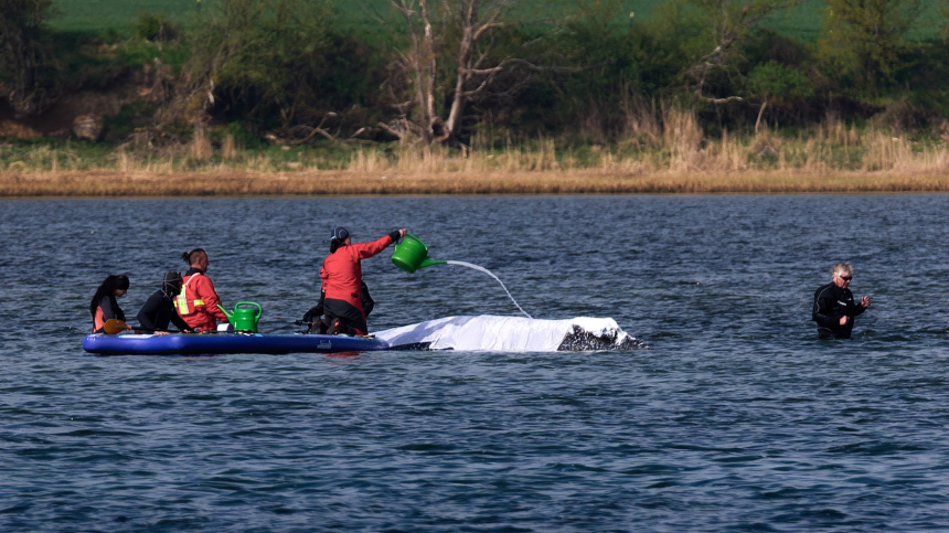От долгого пребывания на мелководье и стресса кожа кита высохла и заметно истощилась, поэтому биологи не стали устанавливать на него датчик, чтобы не подвергать животное дополнительным рискам.