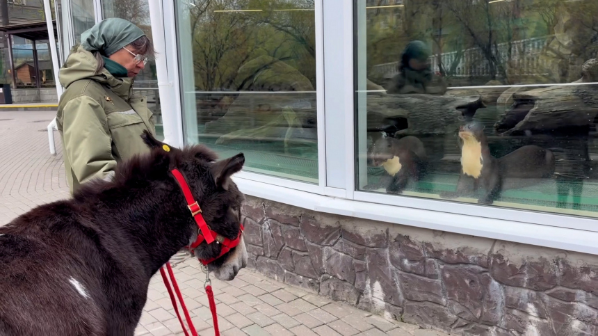 Гигантские выдры из Московского зоопарка заинтересовались ослом по кличке Жорик. Об этом сообщила пресс-служба зоосада в Telegram-канале.