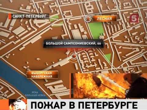 В Петербурге в эти минуты тушат крупный пожар. На Большом Сампсониевском проспекте горит предприятие Ленформаш. Огонь охватил уже четыре этажа здания. Началась эвакуация людей.