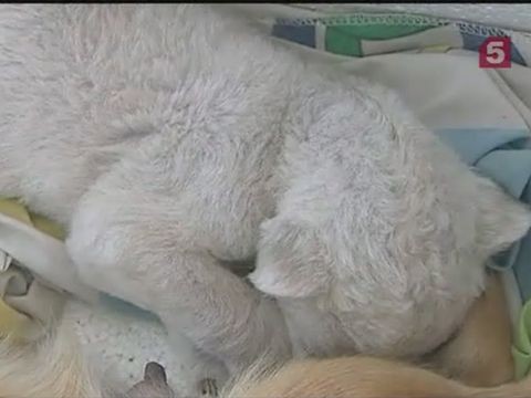 Для самки льва этот малыш стал первенцем, выкармливать его сама она не смогла. Сотрудники нашли выход: новорождённого взяла под опеку самка чихуа-хуа и кормит его вместе со своими щенками.