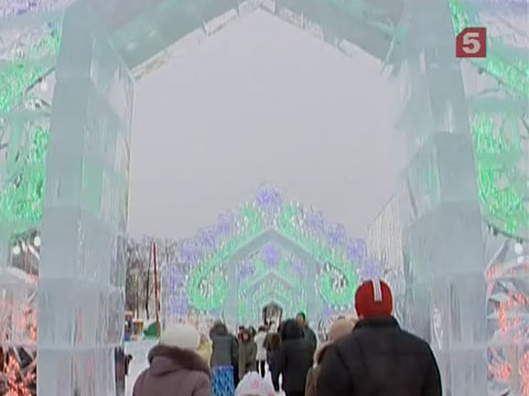 Эйфелева башня появилась в Екатеринбурге. Она сделана изо льда и переливается разными цветами. В столице Урала накануне Нового года построили ледовый городок. Для детей установили горки и другие аттракционы.