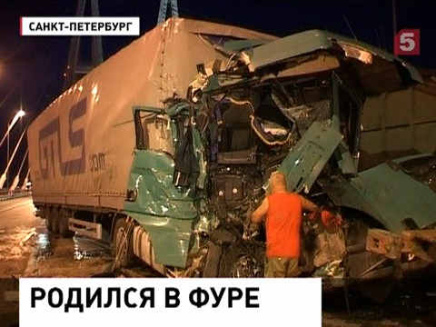 Дорожная авария на Вантовом мосту в Петербурге этой ночью едва не закончилась трагедией. Участниками ДТП стали многотонные машины. Очевидцы происшествия рассказывают, что в стоящий самосвал с прицепом на полном ходу врезалась фура.