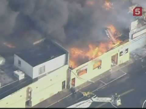 Вдоль берега полыхали - жилые дома, магазины, а также парк аттракционов. Именно эти районы пострадали от урагана Сэнди, в зданиях до сих пор делали ремонт, поэтому людей в них не было.