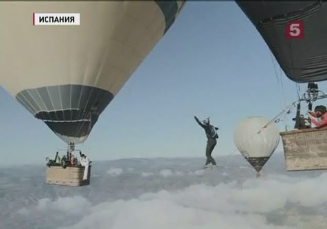 Бесстрашные спортсмены закрепили трос между двумя корзинами воздушных шаров. Поднялись на высоту более трех тысяч метров. И попытались удержать равновесие.