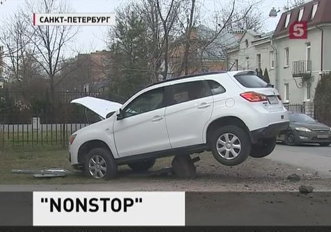 В результате столкновения универсал развернуло а внедорожник бросило на тротуар. Тяжёлая иномарка сбила дорожный знак, повалила его, да так и повисла в воздухе на бетонной опоре. Авария произошла в зоне пешеходного перехода. К счастью людей на зебре в этот момент не оказалось. Невнимательная автоледи и её спутник, вдобавок ко всему пренебрегли и ремнями безопасности.