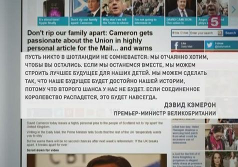Британский премьер-министр Дэвид Кэмерон в отчаянии. Приближается референдум о независимости Шотландии. В своей статье, опубликованной в газете «Дейли мэйл», премьер практически умоляет шотландцев не разрывать на части Соединенное Королевство и 18 сентября проголосовать против независимости.