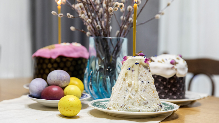 Яйца остаются одним из главных пасхальных символов. Их окрашивают в разные цвета, используя как натуральные, так и пищевые красители — от луковой шелухи и свеклы до куркумы и каркаде. Популярны также декоративные техники росписи.