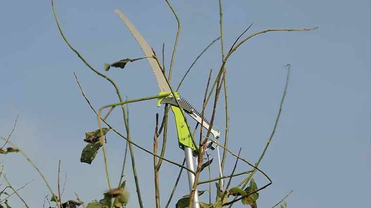 Если на участке не много деревьев, то и смысла в дорогом устройстве нет. Главное — правильно подобрать длину телескопической ручки.