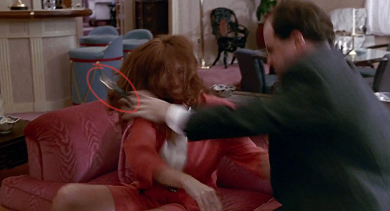 Почти в конце фильма адвокат Филип Стаки на красном бархатном диване решает попытать судьбу и сделать Вивиан непристойное предложение. До этого он неоднократно делал ей сексуальные замечания, и терпение героини лопнуло.