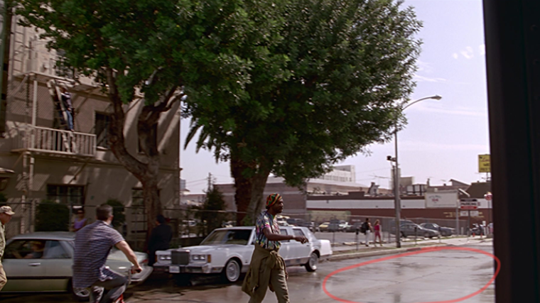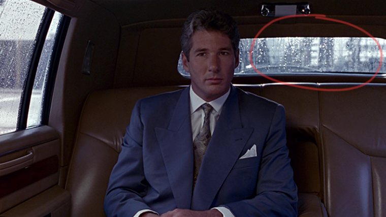 В финальной сцене, где Вивиан и Эдвард целуются на пожарной лестнице, отчетливо видно мокрый асфальт с небольшими лужами. Дождь-фантом явился снова.