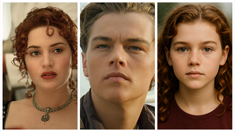 Сама история влюбленной экранной пары заканчивается трагично. Роуз скорбит по утонувшему любовнику, и в знак своей великой любви бросает в океан свой драгоценный кулон. Вот так, если бы он выжил, мог выглядеть их ребенок.