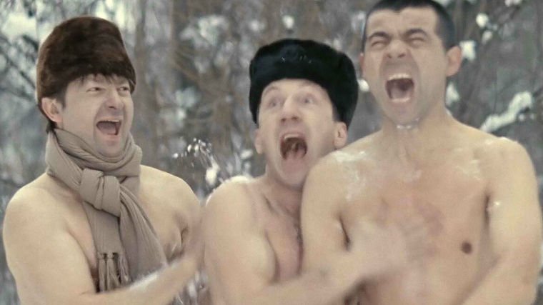 Затем Крамаров неожиданно натер Муратова снегом, а Вицин, подхватив инициативу, начал тереть и самого Крамарова. Этот дубль с живой импровизацией и вошел в фильм.