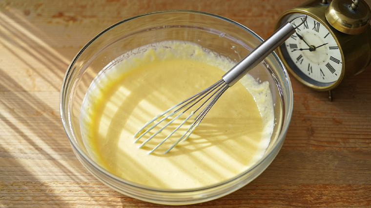 Использование яиц и молока прямо из холодильника снижает вероятность идеального результата. Желательно, чтобы ингредиенты были комнатной температуры — так тесто получится однороднее, а блины — нежнее.