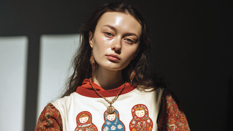 Для тех, кто желает постепенно добавить элементы русского стиля в нынешнюю моду, есть современное переосмысление русской эстетики. Можно начать с более легких способов внедрения национального колорита в гардероб — например, выбрать футболку или свитшот с характерным этническим принтом.