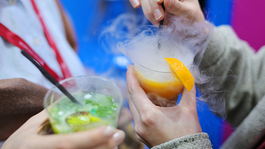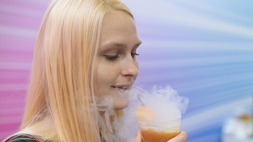 В Москве шеф-повар кулинарной студии решил удивить гостей и приготовил им эффектные коктейли с жидким азотом.